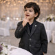 A refined toddler wool-blend blazer featuring a soft heathered beige finish, notched lapel, front flap pockets, and easy-close buttons—perfect for polished, comfortable dressing.